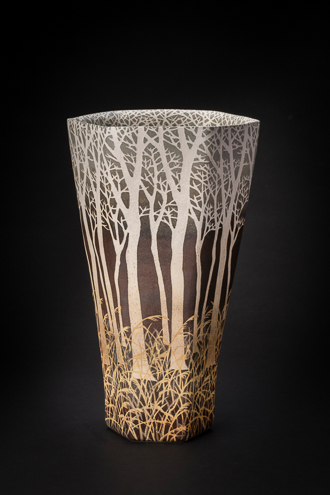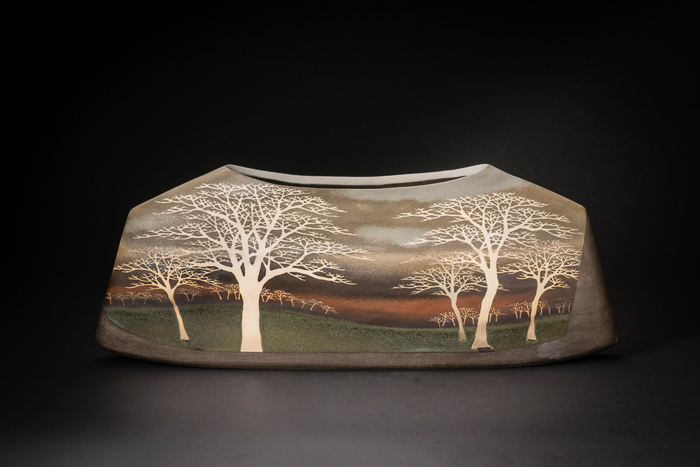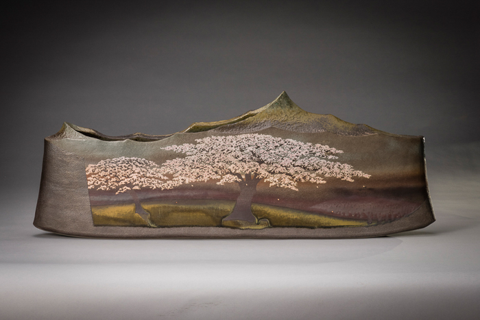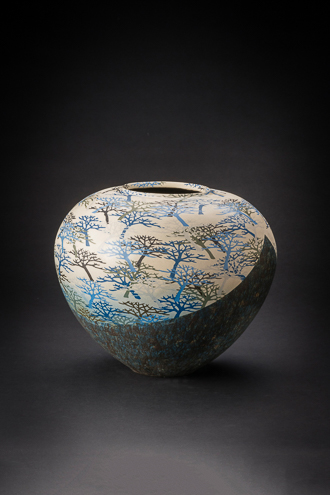 一貫してモチーフにしているのは心象風景ともいえる樹木で、窯を築いた栃木・芳賀町を中心とした自然に対する感動が表現の原点となっている。本展では、高さ50cmを超える大作の花瓶から壺、鉢、陶板などの約150点を展示し、氏の代名詞と言える象嵌技法の世界を展開する。