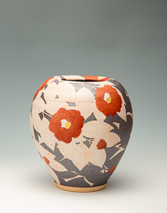 《花文大壺 椿》高さ30.2cm、径27.5cm