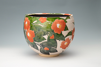《花文大鉢 椿》高さ31.2cm、径38.7cm