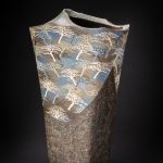 《象嵌釉彩樹林芒󠄀文六角花瓶》高さ50.6cm、30.3×28cm