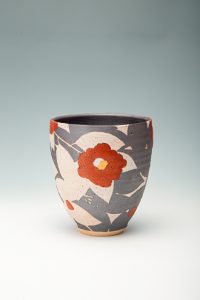 《花文広口壺 椿》高さ21.8cm、径19.3cm