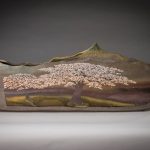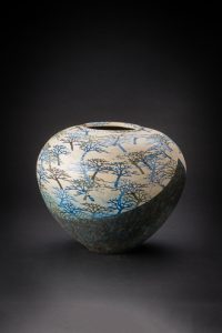 《象嵌泥彩樹林文壺》高さ26.5cm、径32cm