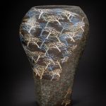 《象嵌釉彩樹林文扁壺》高さ28.9cm、75.8×12.5cm