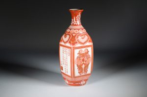 » ②宮本屋窯≪結蜃楼に双鳳玦図四方徳利≫江戸時代後期 個人蔵
